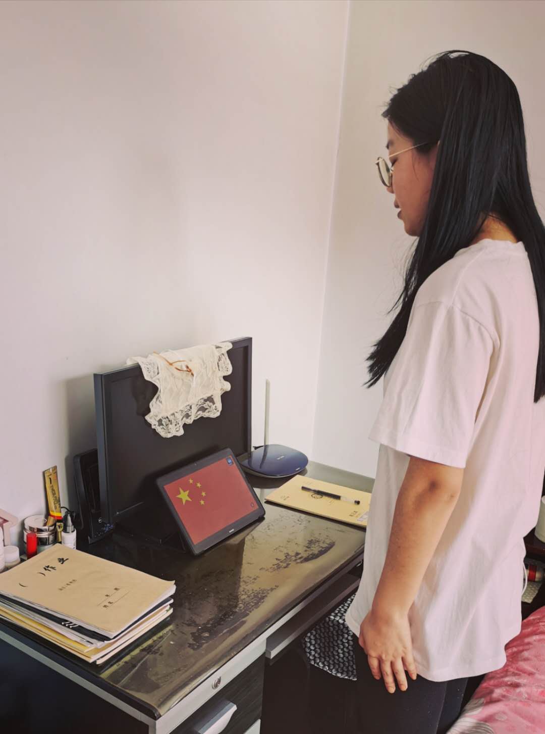 虽然是线上开班式,全体入党积极分子仍然庄严肃立,唱响国歌。