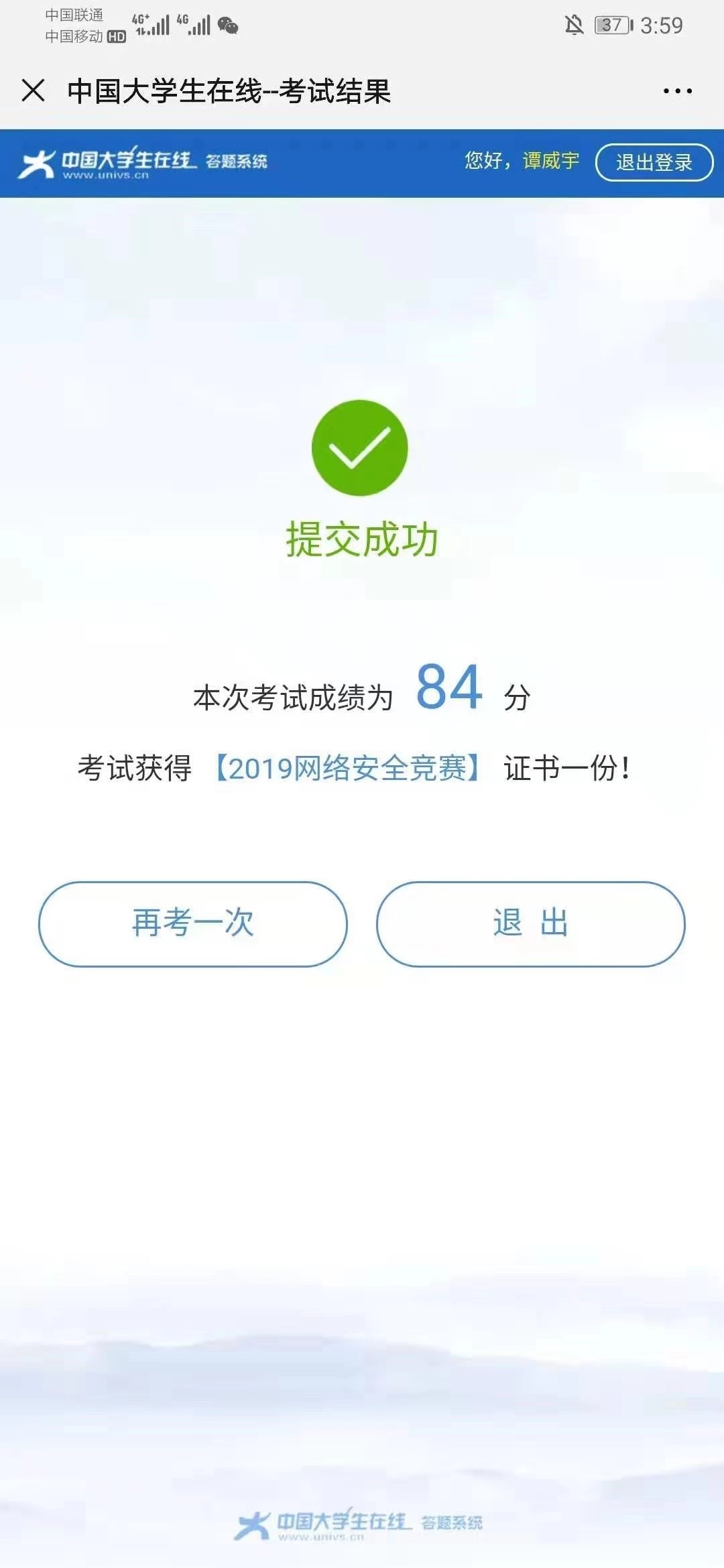2、分院团委组织同学进行“网络安全知识竞赛”网上答题活动,本次答题人数高达552人。体现了我院师生对于网络安全高度重视,并且全体师生都荣获了“全国大学生网络安全知识竞赛证书”