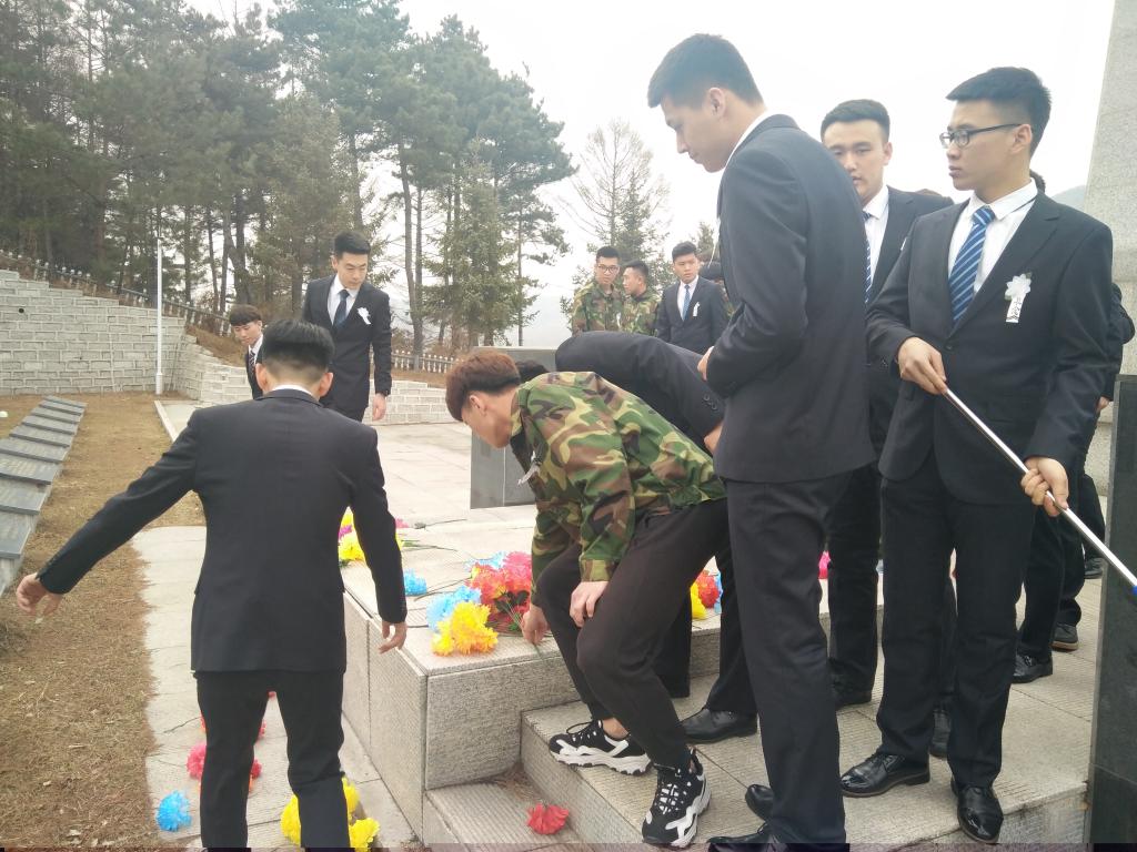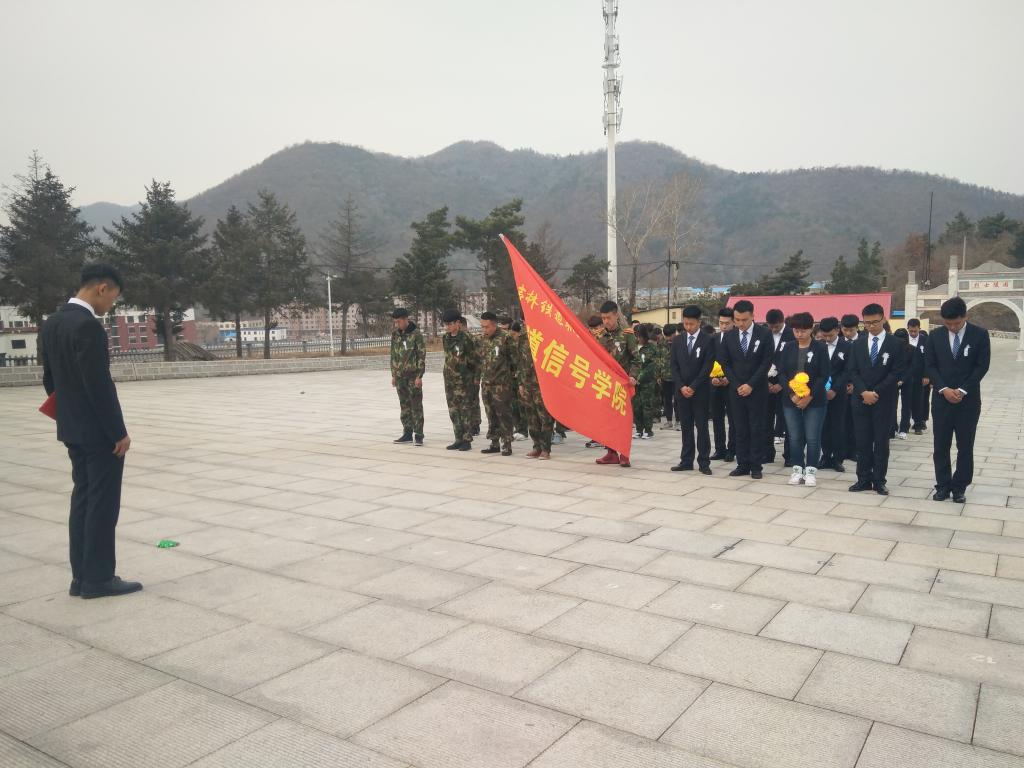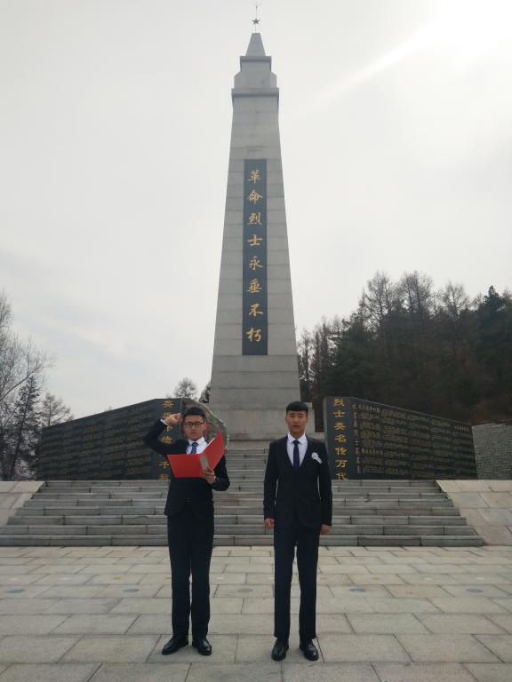 此次活动由我院学生干部杨嘉兴带领大家宣读入团誓词,以此来告慰先烈的灵魂,缅怀革命精神。在为革命烈士默哀时,浓重的悲壮气氛令在场的每一位人员感到震撼与沉重。学生代表为英雄们献上花圈,以寄托对革命烈士的哀悼和感激之情。仪式结束后,大家分散活动,团委书记李佰玲带领各位瞻仰纪念碑,清扫烈士陵园。