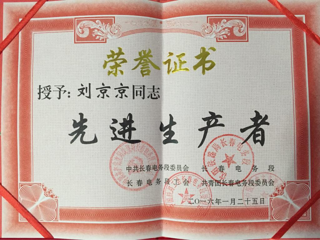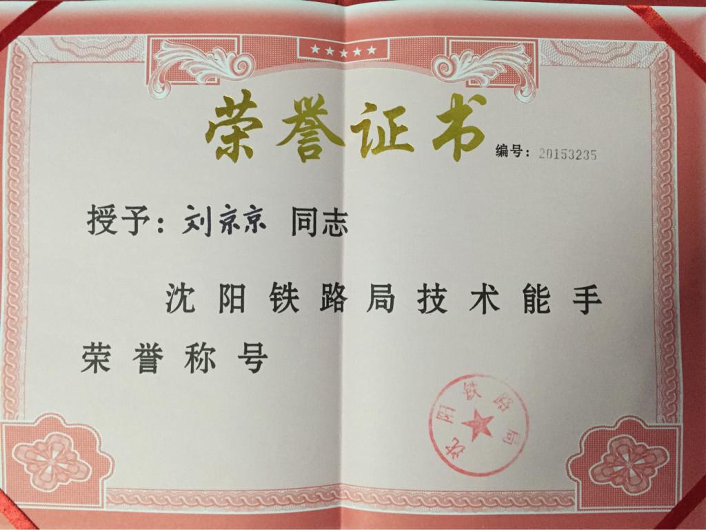 班,现工作于长春电务段信号室内工区。在第沈阳铁路局集团公司
