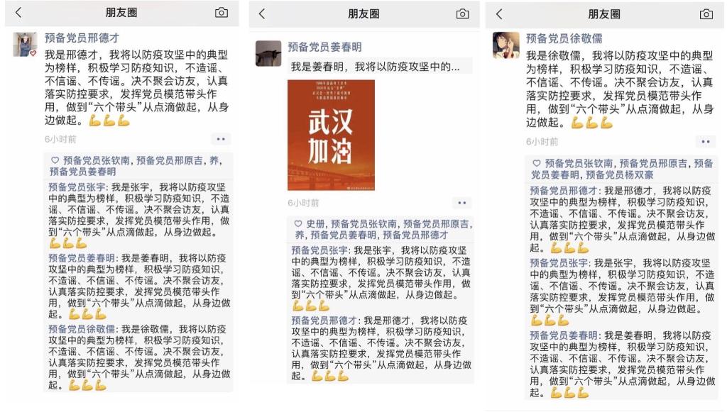 最后,要求全体党员在这次疫情防控阻击战中要守初心、担使命,守土有责、守土尽责!落实、落小、落细、各项防控措,进一步号召全体学生贯彻落实党支部和分团委倡议的“六带头”做好防控工作。