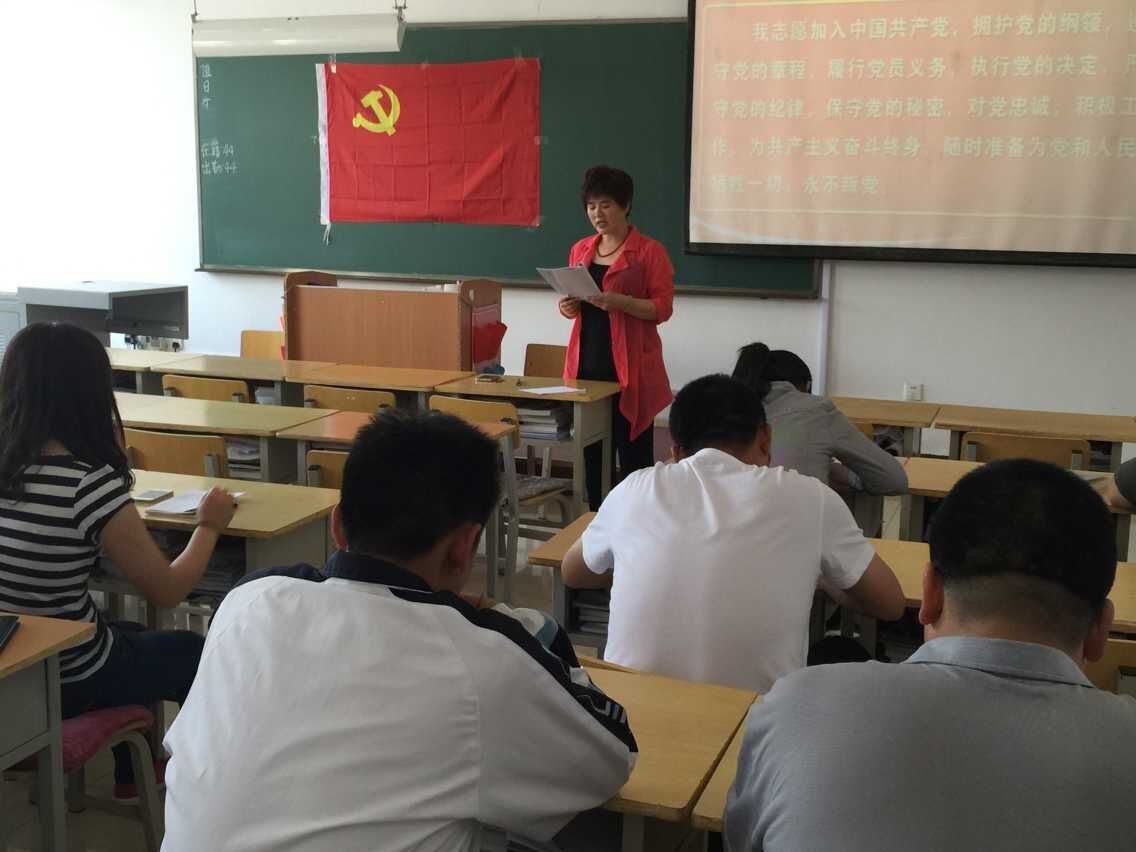 为纪念中国共产党建党94周年,坚定共产党员为共产主义事业奋斗终身的理想信念,铁道信号系党总支于6月19日13点开展全系党员“重温入党誓词”活动。活动由系党总支书记林红东主持,学生党支部书记王婧婧领誓,全系教师党员、学生党员参加。