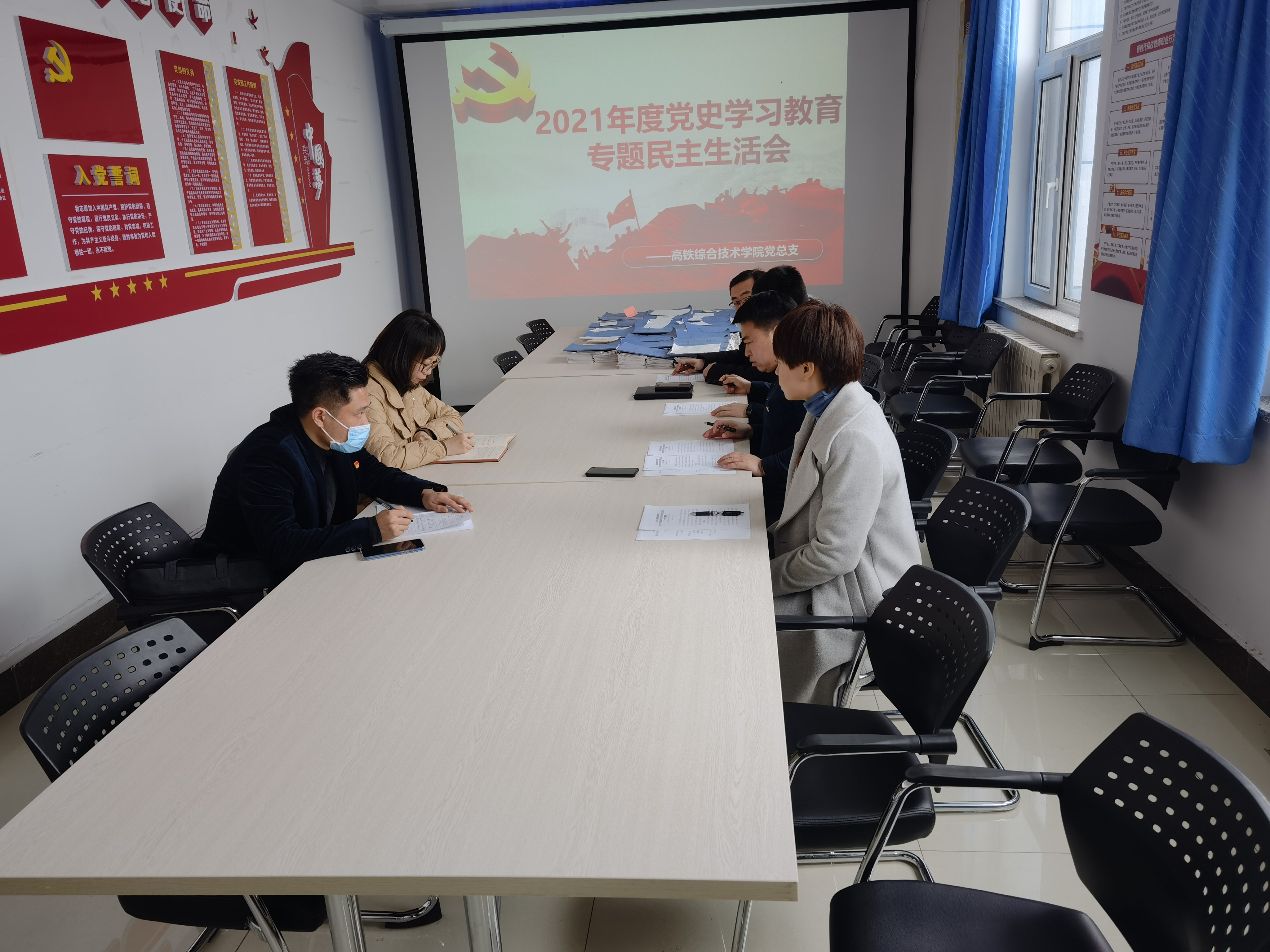 按照《吉林铁道职业技术学院 2021年度党员领导干部党史学习教育专题民主生活会方案》的通知要求,2月28日下午,高铁综合技术学院党总支在教学楼702,召开了2021年度党史学习教育专题民主生活会,工会主席刘佳佳、组织部王帅宇受学校党委指派对会议进行督导,会议由党总支书记莫建国主持。