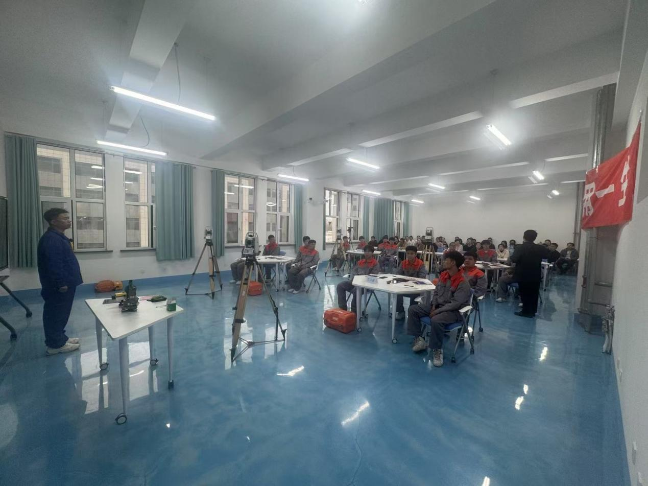 为深化课堂教学改革,巩固第三批职业教育教师创新团队教师业务能力提升成果,搭建教师交流互鉴平台,2025年3月26日,吉林铁道职业技术学院高铁综合学院的智慧教室里气氛热烈,一场融合“互动探究+精准实操”的《全站仪整平》样板分享课在此举行。本次活动由教务处教师发展中心主任李秀春、各教学分院院长、副院长及一线教师代表共计70余人到场观摩交流,共同见证课堂教学的创新实践与师生互动的生动场景。