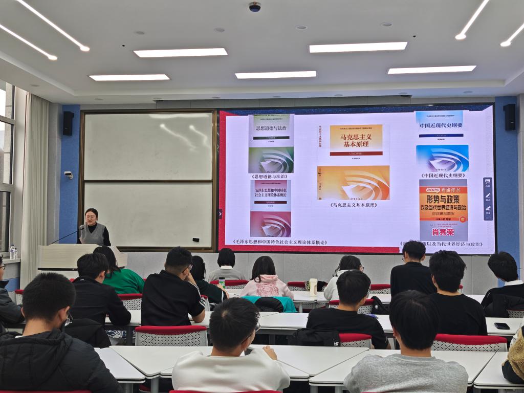 最后,马月老师带来考研政治备考攻略,打破了同学们“政治只需死记硬背” 的误区。她展示常用参考书,讲解考试的题型分布,还展示具体例题,让大家直观看到选择题、分析题的实际样式与难度,对考试内容有更真切的认知,并结合近年数据,清晰地列出国家分数线及不同院校的实际录取分数区间,帮大家明确备考目标。在备考策略上,她分阶段给出建议,让看似枯燥的政治备考变得有条可循。