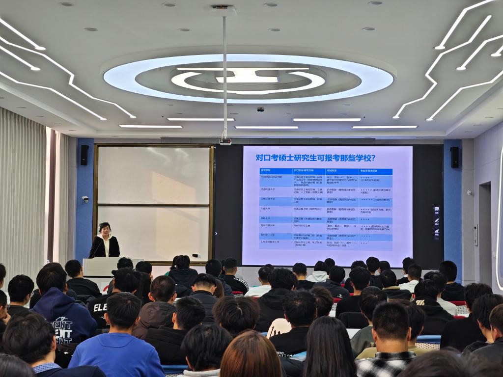 2025 年 11 月 26 日下午,高铁综合技术学院面向高速铁路信号控制技术本科专业大一新生,开展学历提升专题讲座。这场讲座精准对接新生“初入大学对考研懵懂,渴望明确方向”的学历提升需求,既是学院落实“立德树人”根本任务、助力学生成长的具体行动,也契合国家 “推进高等教育内涵式发展”“培养高素质专业人才”的导向,让新生们在成长发展道路上少走弯路。