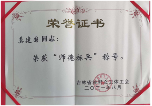 我校莫建国同志荣获吉林省“师德标兵”荣誉称号